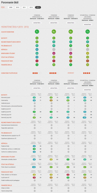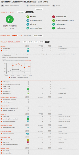 Údaje o mimoriadnych výsledkoch žiakov, teda práve o umiestnení tých najlepších, síce zverejňujeme aj na portáli, ale iba za všetky súťaže spolu – takto to totiž zbiera ministerstvo školstva. Nevieme teda povedať, či má škola výborných študentov v matematike, geografii alebo napríklad nádejných barmanov. Pritom práve takáto predmetová orientácia je často rozhodujúca pri výbere školy.