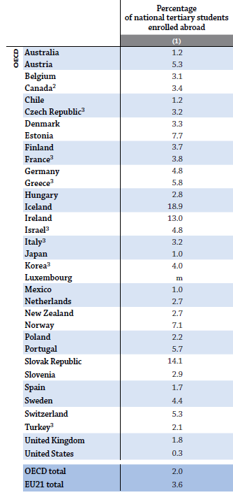 Slovensko má z okolitých krajín zďaleka najväčší podiel študentov vysokých škôl, ktorí odchádzajú študovať do zahraničia.